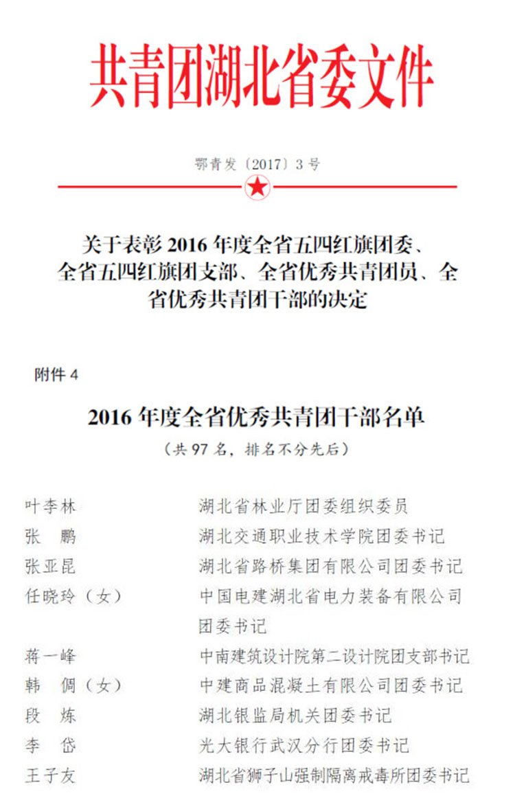 4月26日,省企業團工委召開"五四"表彰大會暨2017年國企青年創新創業大賽啟動儀式。華晟通公司團總支喜獲"五四紅旗團支部"榮譽稱號。同時5月2日,共青團省委下發表彰,公司團委書記張亞昆同志榮獲全省"優秀共青團干部"稱號。