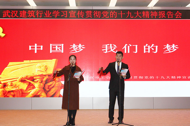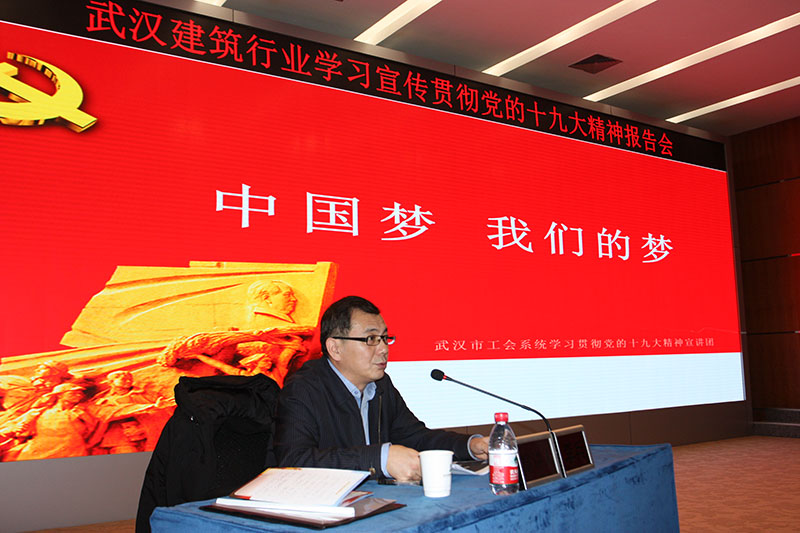 12月15日上午9點30分,由市總工會、武漢建筑業工會聯合會聯合主辦,路橋集團承辦的黨的十九大精神進企業"到職工中去一起學"學習宣傳活動,在路橋集團4樓會議室舉行。市總工會副主席李兵、武漢市建筑行業工會聯合會副主席許靜紅、武漢建筑業協會副秘書長張漢珍和宣講隊隊員曾海超、李瑩等與職工親切交流學習黨的十九大精神。武漢建筑業協會會員單位共計80余人參加了"一起學"活動。