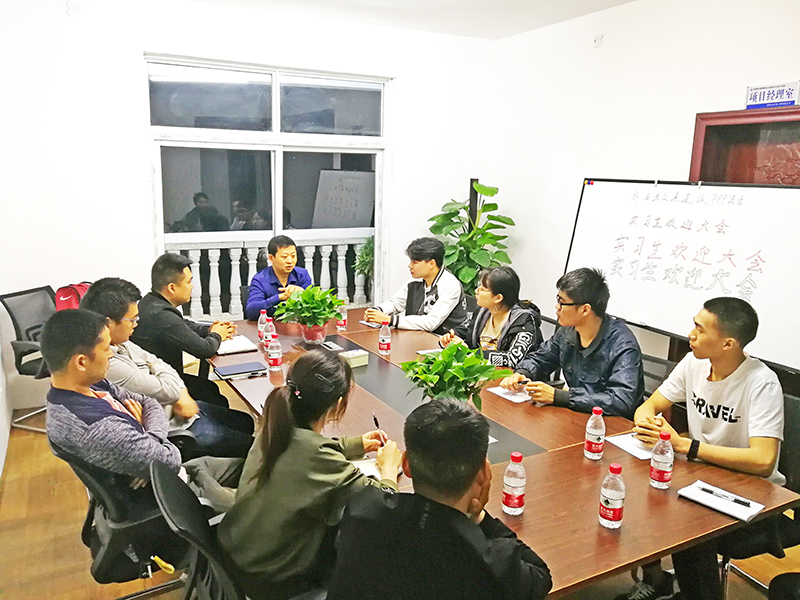 會上,項目部經理唐國良耐心地為實習生介紹各部門情況,并指導實習生工作注意要點及發展。同時,積極與實習生互動并分享自己的經驗,把正能量、堅持、努力等思想通過一個個自我小故事,生動地展現在實習生面前,鼓勵實習生融入項目部,努力學習、互相幫助、并肩前行。